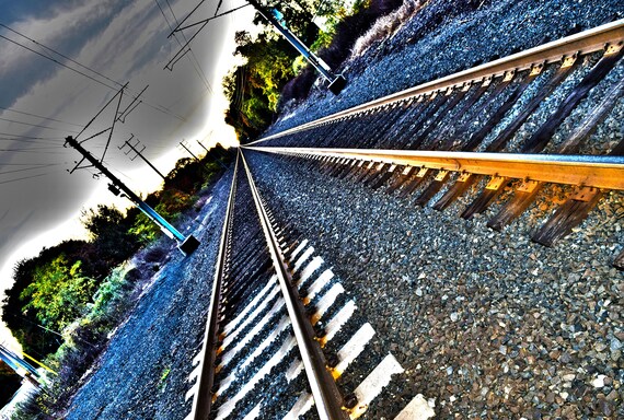 Tilted Railroad Tracks Matted Urban Photography Street Home Etsy Singapore